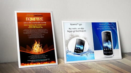 Chúng tôi nhận in poster với nhiều kích thước khác nhau, từ các mẫu nhỏ gọn để bàn đến poster khổ lớn treo tường hoặc đặt ngoài trời: